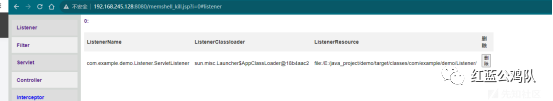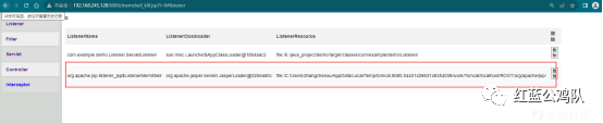 如此以来便完成了listener内存马的删除。以下为演示:可以清晰看到监听器所有的信息,而最后一栏是内存马的.class文件地址,一般的内存马如哥斯拉等工具注入的会自动删除相关.class文件,这里.class为空的基本就有问题,(我这里是测试,没有自删的功能),红圈为我测试注入的内存马