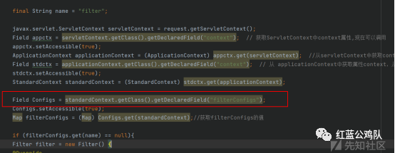 修改成这样就可以了Field Configs = standardContext.getClass().getSuperclass().getDeclaredField("filterConfigs");