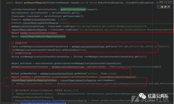 该方法从mappingRegistry获取所有注册的映射,然后转换这些映射为一个 Map。接下来我们反射获取这个方法便足以。当然在此之前,需要获取AbstractHandlerMethodMapping的实现类RequestMappingHandlerMapping。这个类也是获取拦截器的关键类,这个类怎么获取我们放到下一节说,因为牵扯到跨context的应用。该方法从mappingRegistry获取所有注册的映射,然后转换这些映射为一个 Map。接下来我们反射获取这个方法便足以。当然在此之前,需要获取AbstractHandlerMethodMapping的实现类RequestMappingHandlerMapping。这个类也是获取拦截器的关键类,这个类怎么获取我们放到下一节说,因为牵扯到跨context的应用。