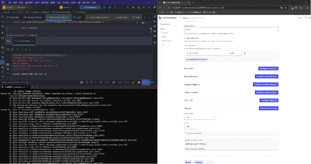 攻击者可以访问正在连接到Kafka UI的Kafka集群。在这种情况下,攻击者可以利用此漏洞扩展访问权限,并在Kafka UI上执行代码。