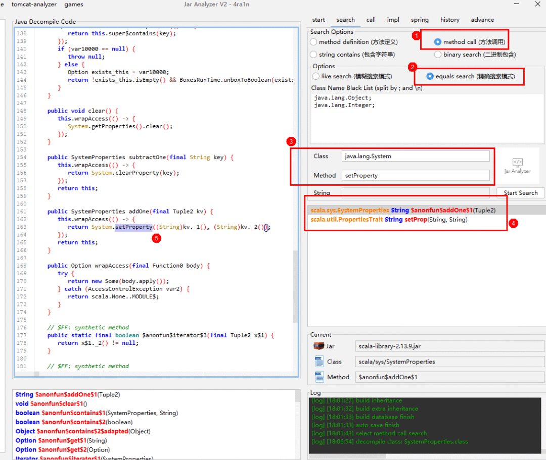 Scala-library中存在2处可以直接调用,很巧的是这两处都为Public,其中setProp()很容易会想到可以通过invokesetter的方法打反序列化: