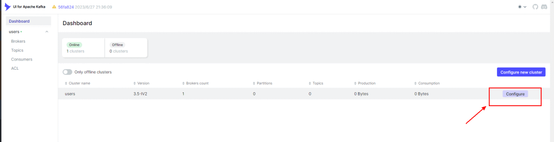 访问8080默认端口,进入Kafka-ui,点击配置Kafka Cluster(当然再新建一个也是可以的):