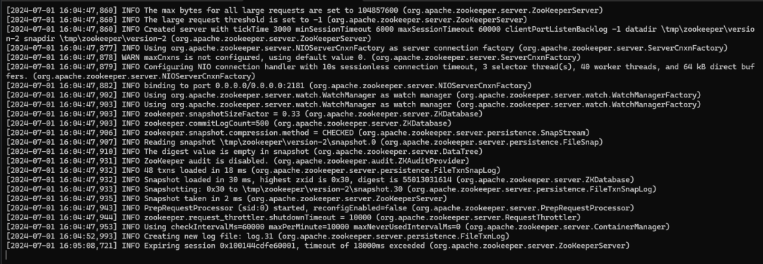 .\bin\windows\zookeeper-server-start.bat .\config\zookeeper.properties