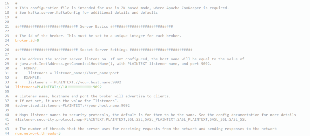 修改\kafka_2.13-3.5.0\config\server.properties配置文件中的IP地址为本机IP,其他为默认