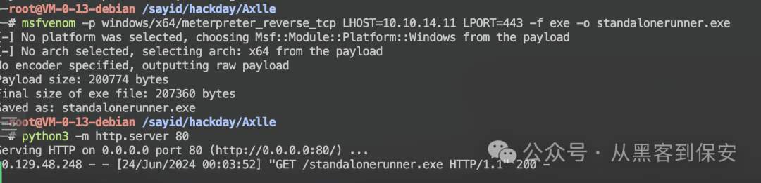 靶机下载 msfvenom 生成的 standalonerunner.exe
