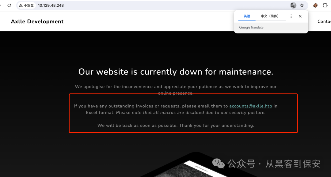 其中有一个疑似邮件钓鱼的提示(并且 nmap 扫描结果也发现开放了25端口)可以向accounts@axlle.htb 发送 Excel格式内容的邮件。