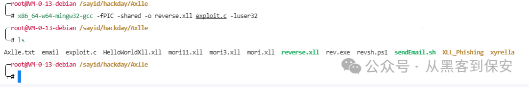 x86_64-w64-mingw32-gcc -fPIC -shared -o reverse.xll exploit.c -luser32