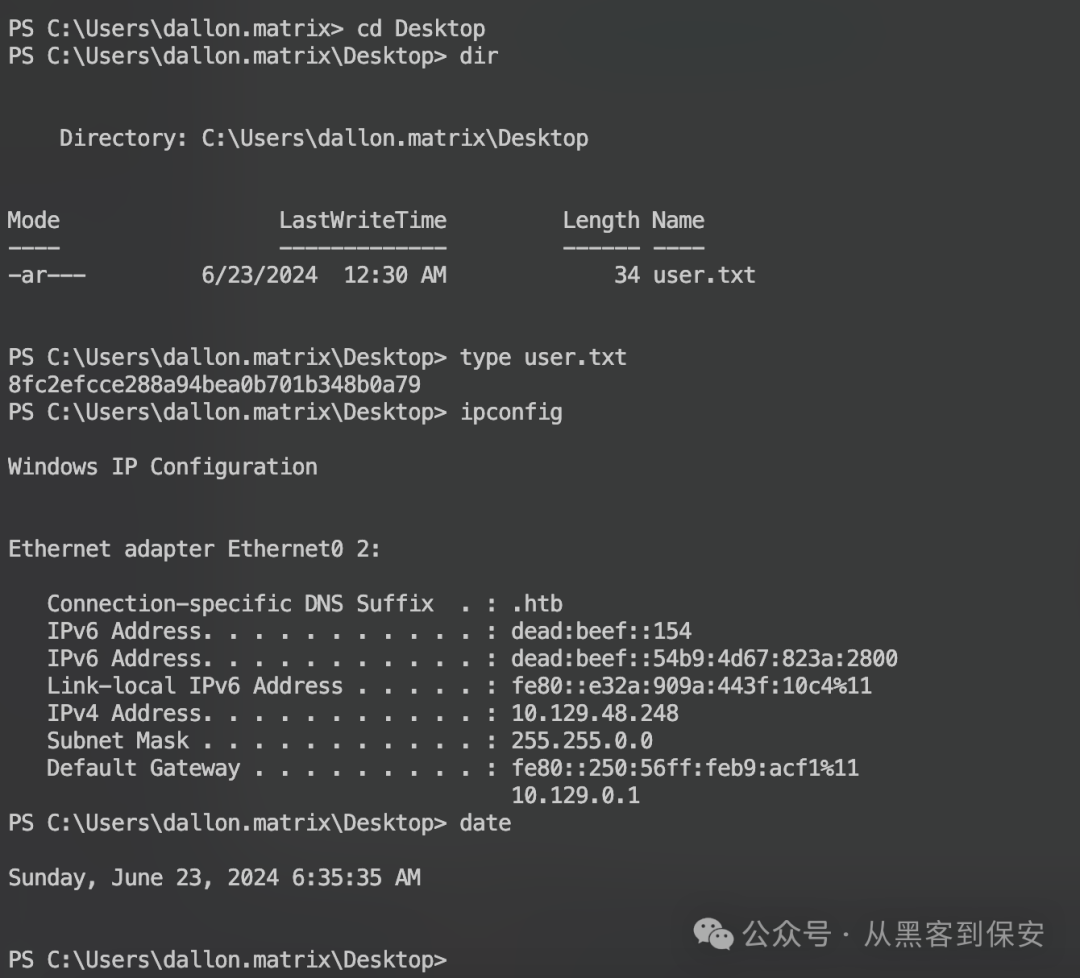 读取桌面目录(C:\Users\dallon.matrix/Desktop)下用户flag: