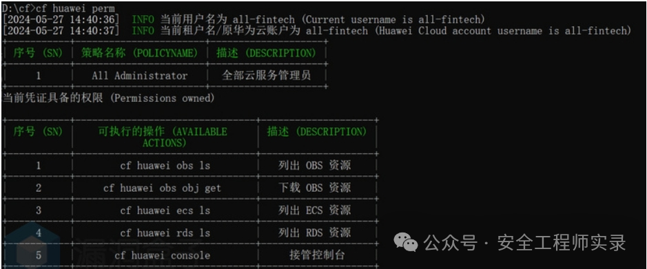 确定有权限之后可以使用云接管工具CF,虽然CF使用起来比较方便,但是大概率也会触发告警。同时也是告诫大家不要有非授权的攻击行为,莫伸手,伸手必被抓。CF的使用教程参考:https://blog.csdn.net/qq\_59607911/article/details/135967386