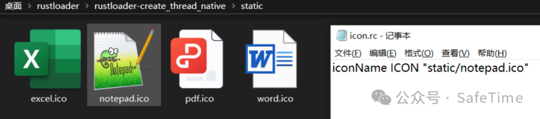 在 static 目录下放置了四个常见图标,可修改icon.rc