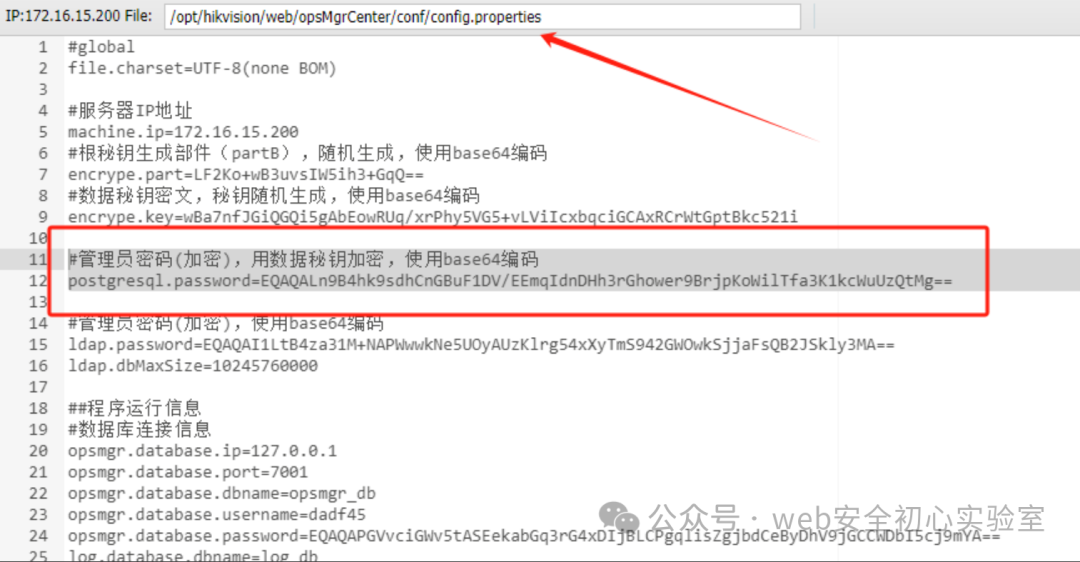 首先是找到了海康的配置文件,拿到了数据库的密码,这里是加密的
