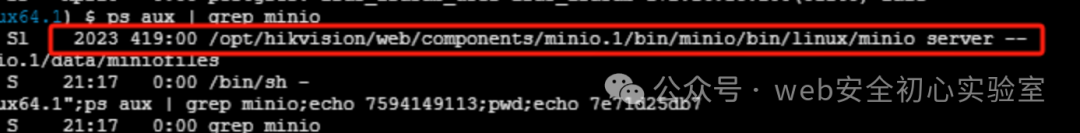 查看进程发现minio运行目录