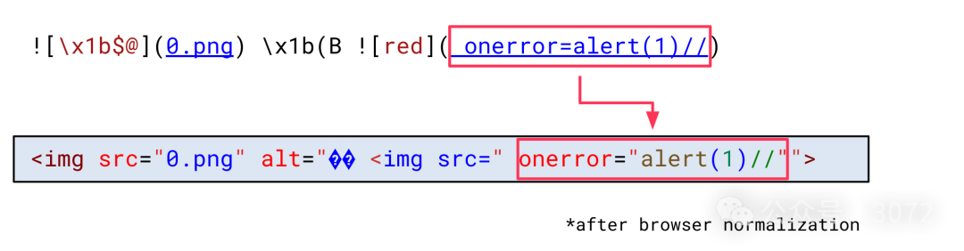 这种技术的场景是攻击者可以控制两个不同HTML上下文中的值。一个常见的用例是支持markdown的网站。例如,让我们考虑以下markdown文本: