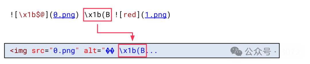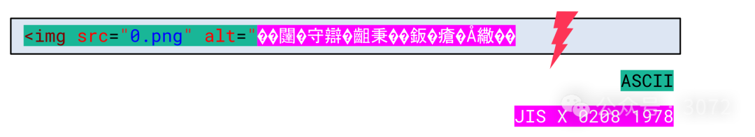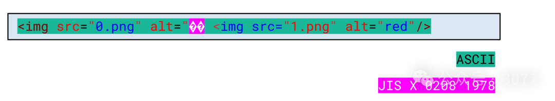 现在,假设攻击者在第一个图像描述中插入了切换字符集到JIS X 0208 1978的转义序列: