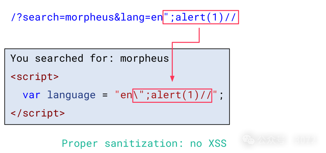 因此,插入的双引号实际上指定了字符串的结束,允许攻击者注入任意JavaScript代码: