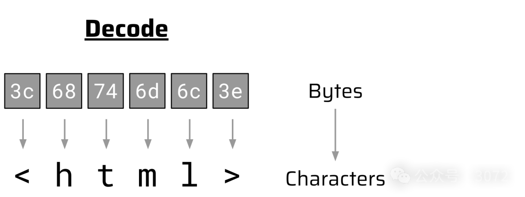 当浏览器在HTTP响应体中接收到这些字节时,它可以将它们转换回HTML文档的字符。这一过程将字节变为字符(解码):