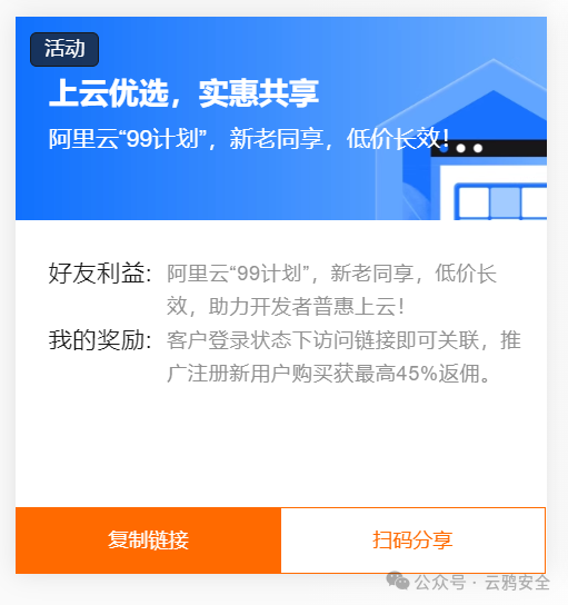 除此之外,轻量级服务器只够一个人用的,如果多人协作的话,就容易崩溃。相比而言阿里云的经济型服务器能进行多人共享,如果后续搭建其他的服务,类似confluence的话,最好还是使用经济型服务器。现在阿里云还有分享计划,推荐给朋友买能领取奖励金,既让朋友买个好用的服务器,俩人还能进一步领到优惠。