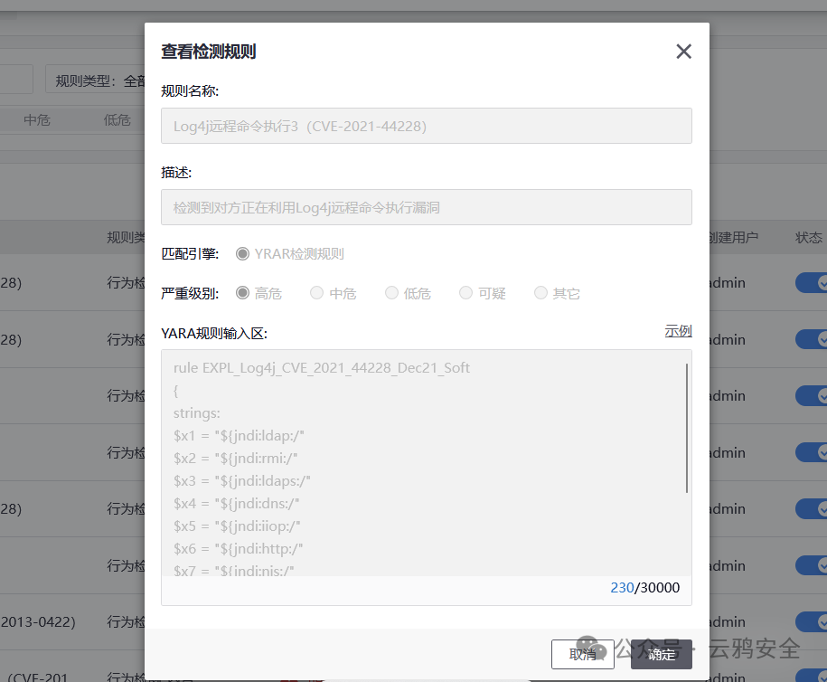 rule部分:检测规则命名。