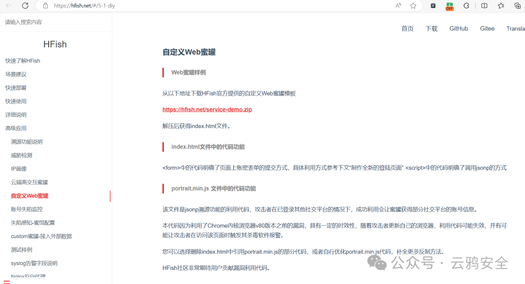 可点击自定义Web蜜罐制作查看官方文档制作