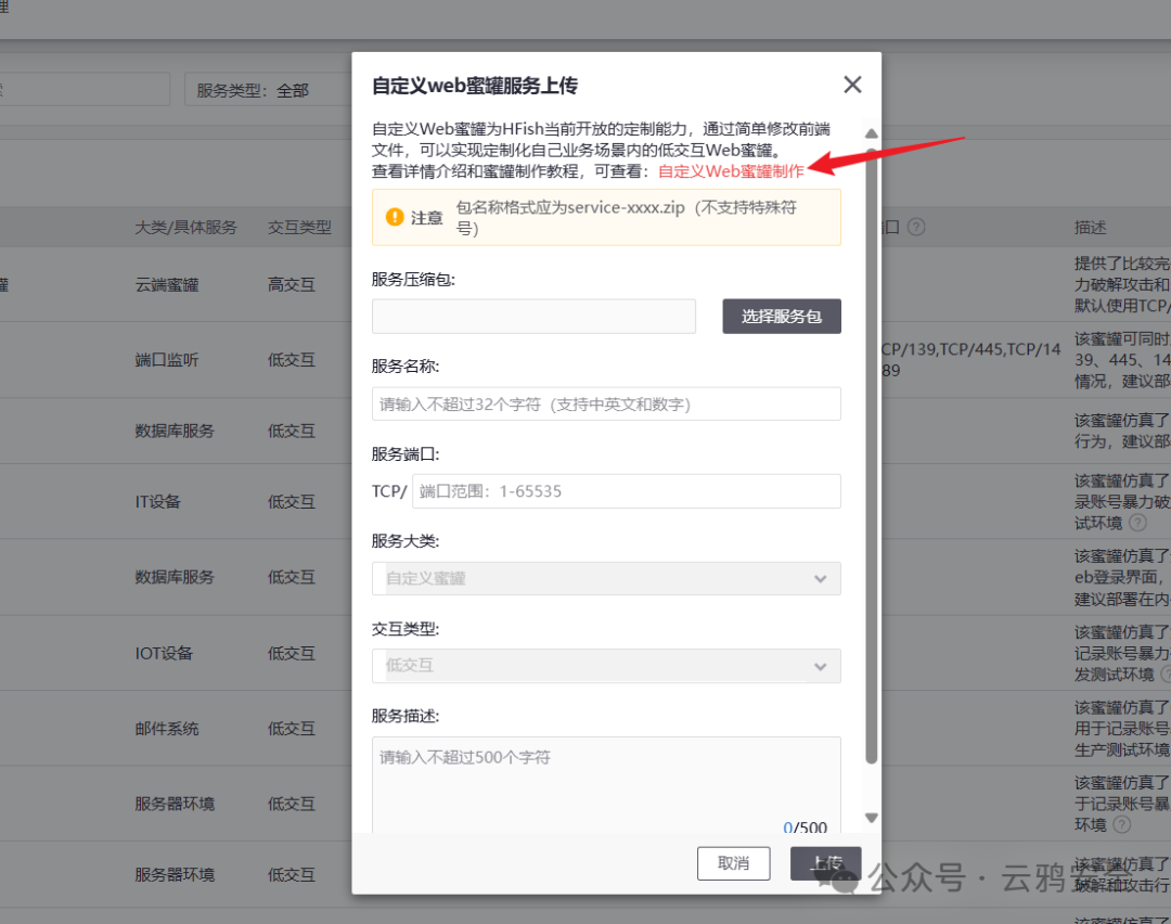 自定义web蜜罐在环境管理-服务管理-新增服务中