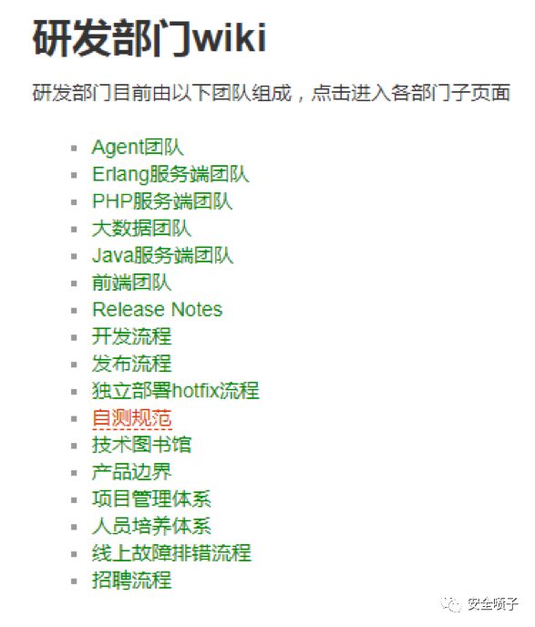 最后关于技术建设不讲太多,主要是各个技术栈的代码规范,环境、API文档之类的,同时我们也会定期对新技术进行学习和理解和经验的总结。比如知识积累我们设立了wiki,记录很多流程、制度以及知识方面的东西: