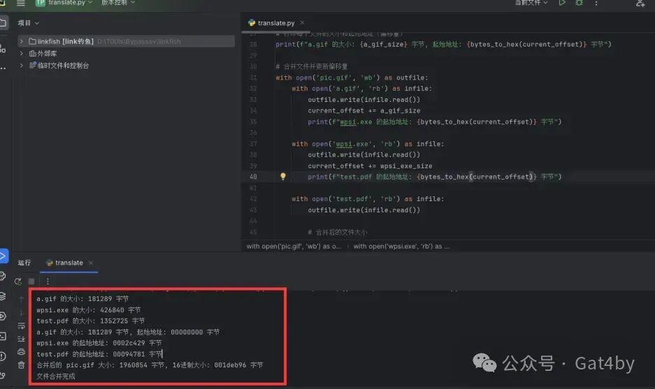 运行程序后得到相关的偏移量(16进制)和所占的字节信息,输出为pic.gif。