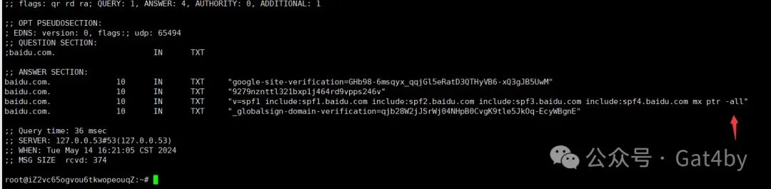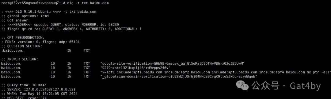dig -t txt baidu.com
