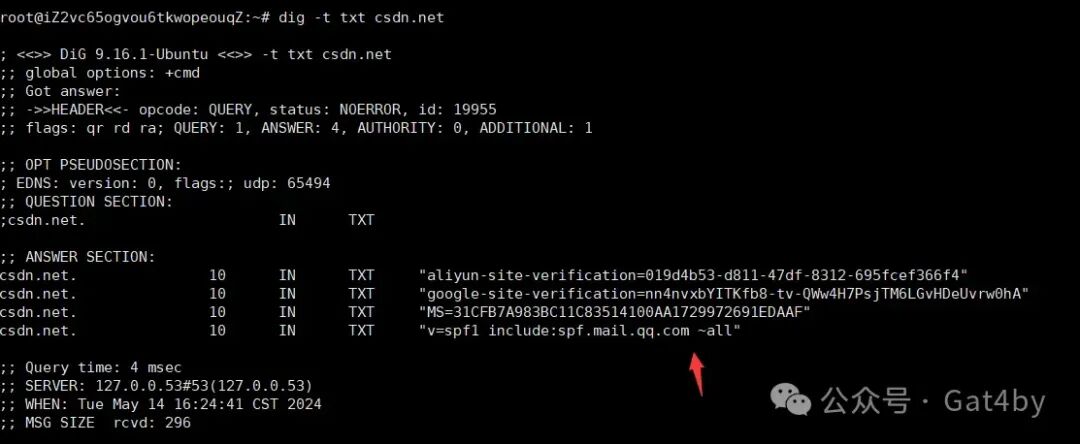 dig -t txt 被测域名/被测子域名