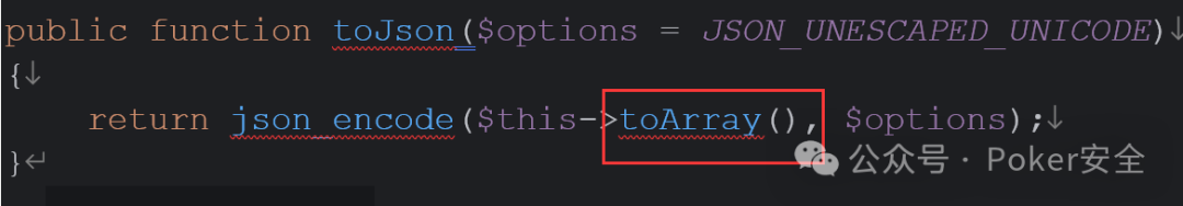 //第二条链__toString->toJson->toArray->visible->