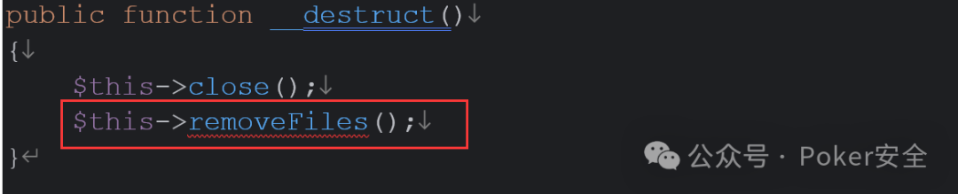 第一段:__destruct->removeFiles-> file_exists