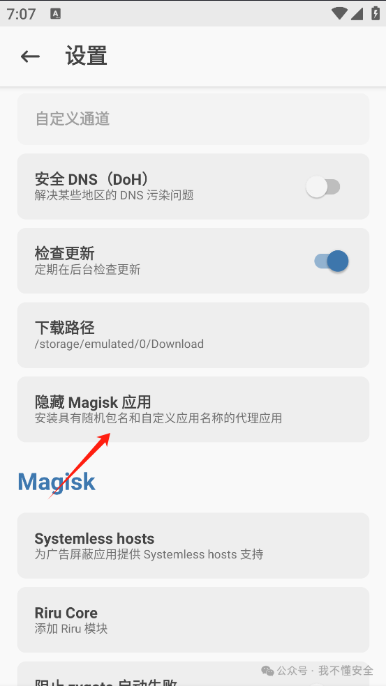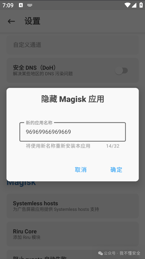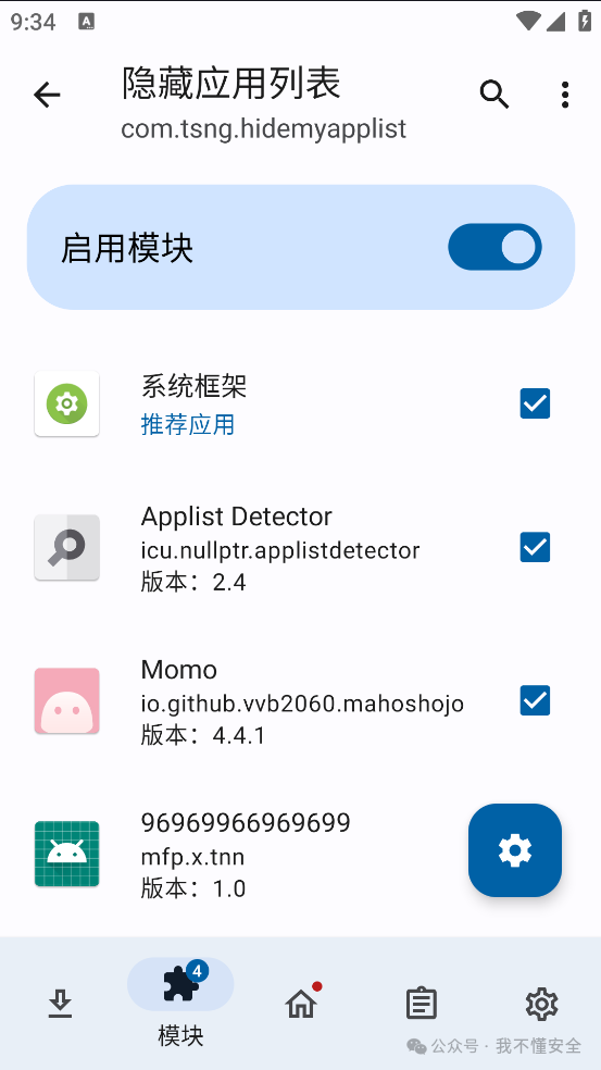 可以先修改一下面具的包名,一些app基础检测可能会检测到系统的安装包名(不修改也行,后期黑白名单对其隐藏即可)