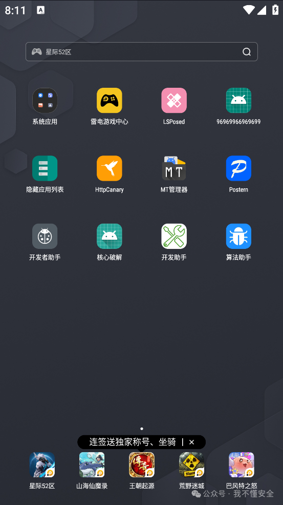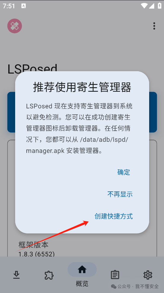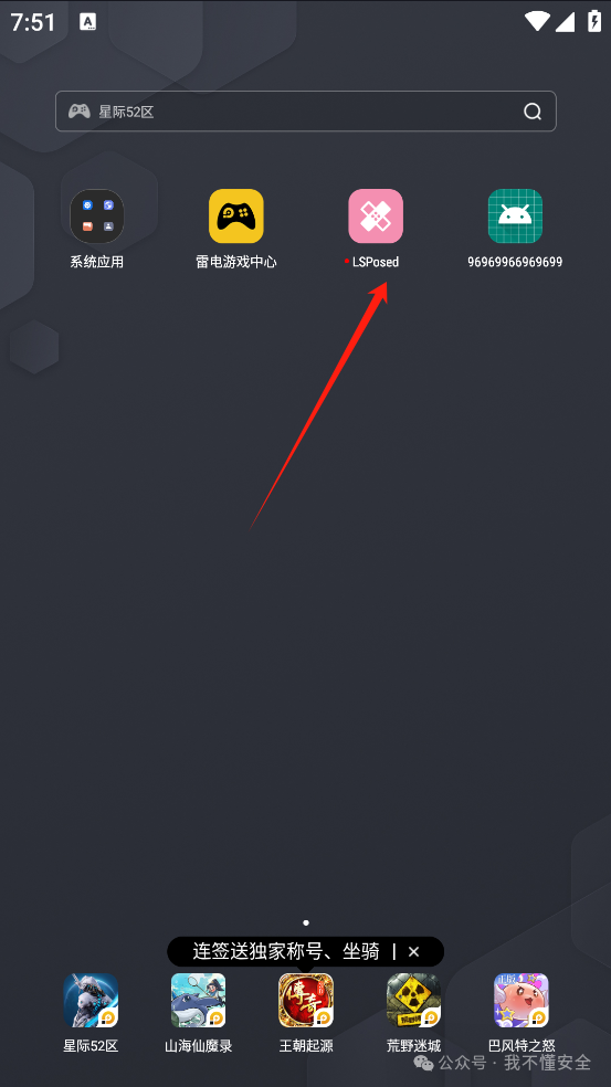 直接把Lsposed.apk安装,安装的目的是因为lsp框架安装后,有的模拟器会出现玄学问题,比如说找不到任务栏里的框架,没有办法创建快捷方式,但是安装这个寄生器后会影响框架检测,后期比这也是给卸载了,在这里就简单的介绍一下