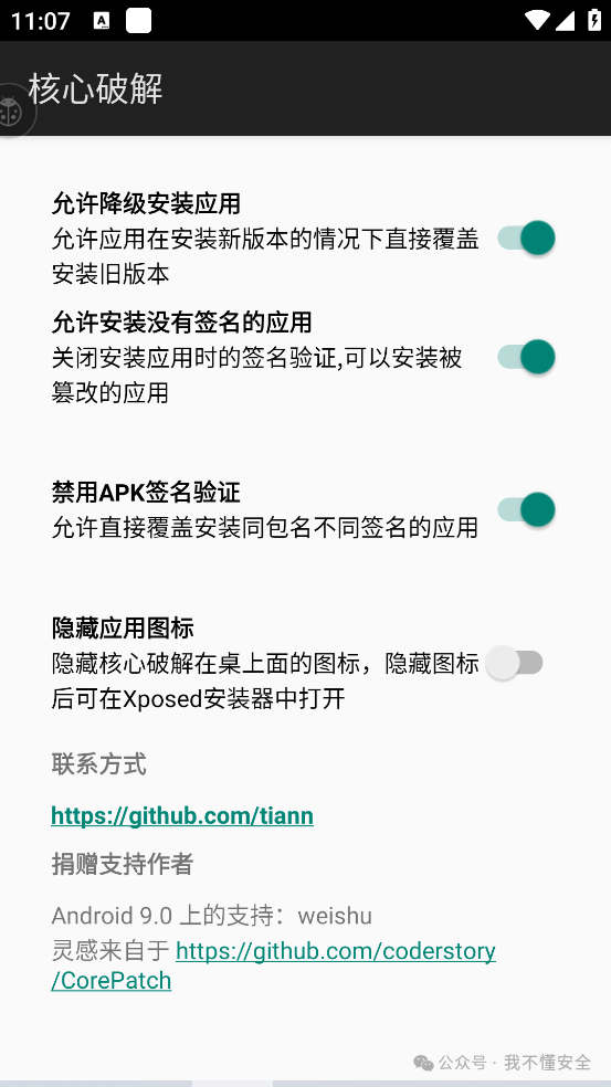 核心破解 该插件主要功能其实就是移动端安装apk后,若是对原始apk改动二次封包后可能由于签名的原因无法直接安装,但是又不想卸载原始的apk,不想丢数据,就可以利用这个尝试一下