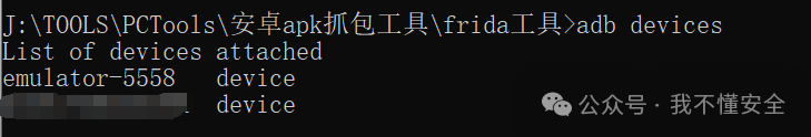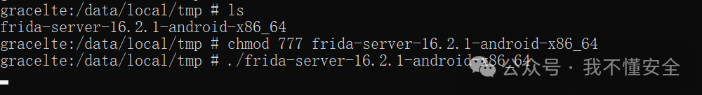 如果大家只有一台设备,那直接adb shell即可;将frida拷贝到安卓手机的tmp目录后,再赋予权限,即可快乐的玩耍了