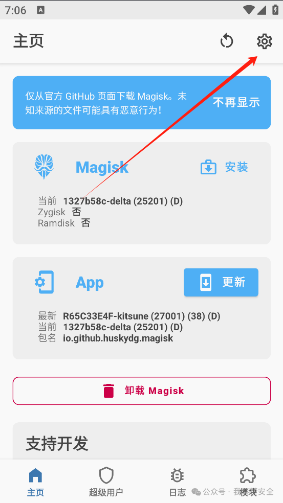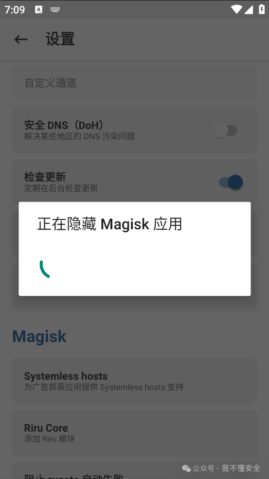 而后会自动关闭软件,等等就好,接下来继续回到主页-设置,打开Zygisk按钮