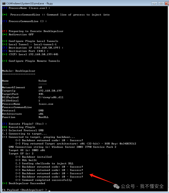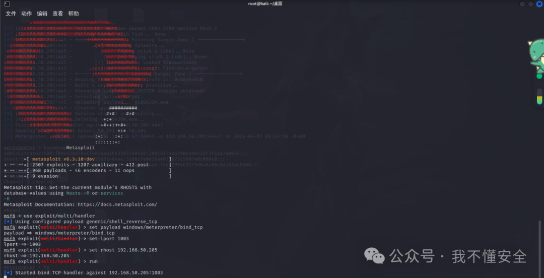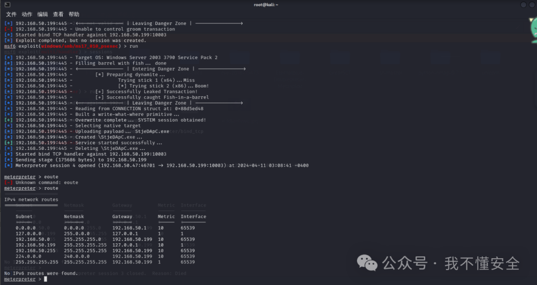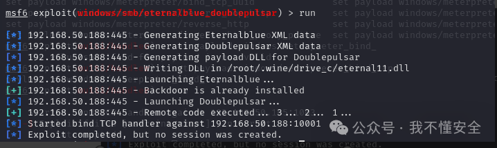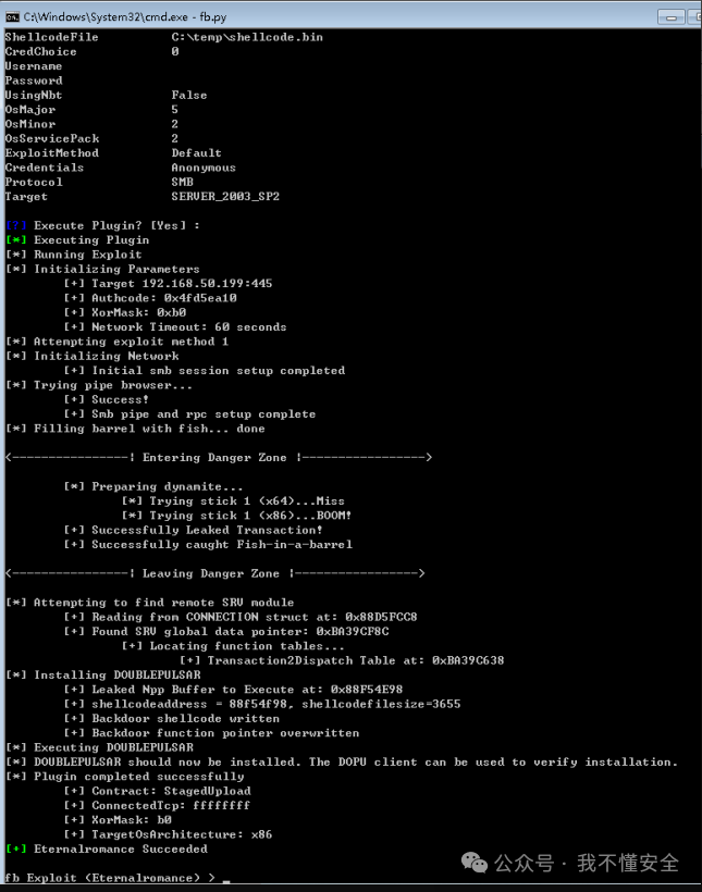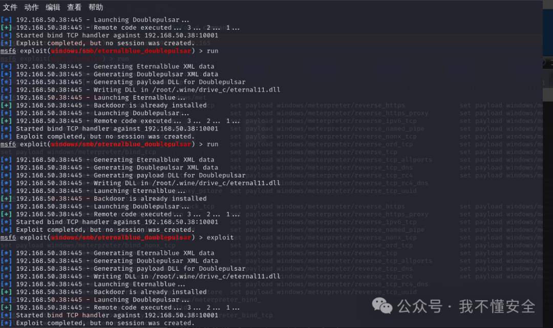 该机器与win7 x86明显有差异,1-3实验,Doublepulsar模块都可以利用成功,但是针对这台windows server 2003而言,却攻击失败了