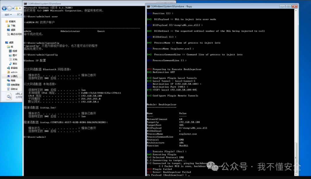 有可能第一次run会失败,目标机器可能会弹explorer.exe信息,不用理会,重新run就行