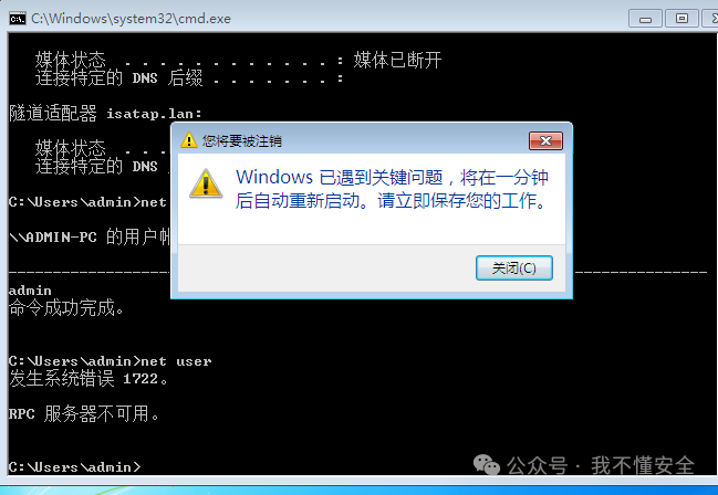 可以看到,即便计算机重启了,但是用户依然创建成功了,所以大家在工作的时候要慎用,以免影响客户正常业务