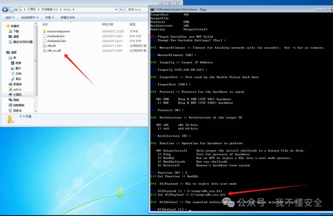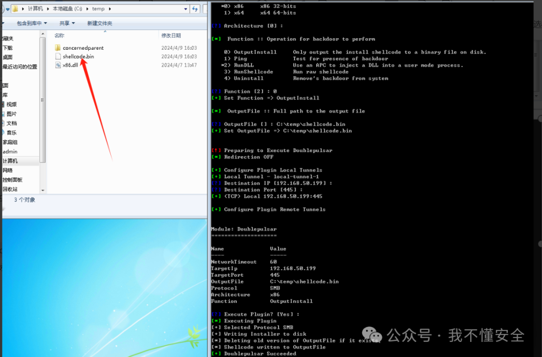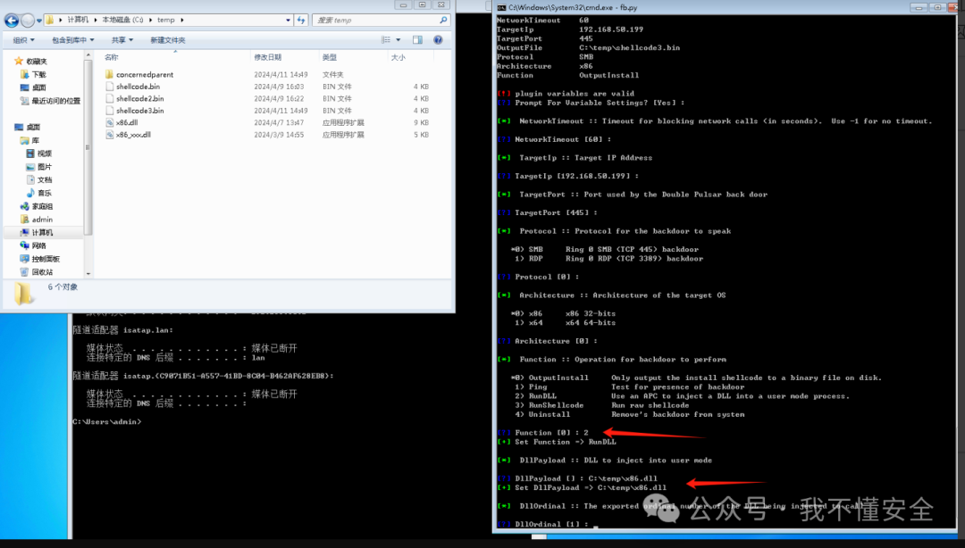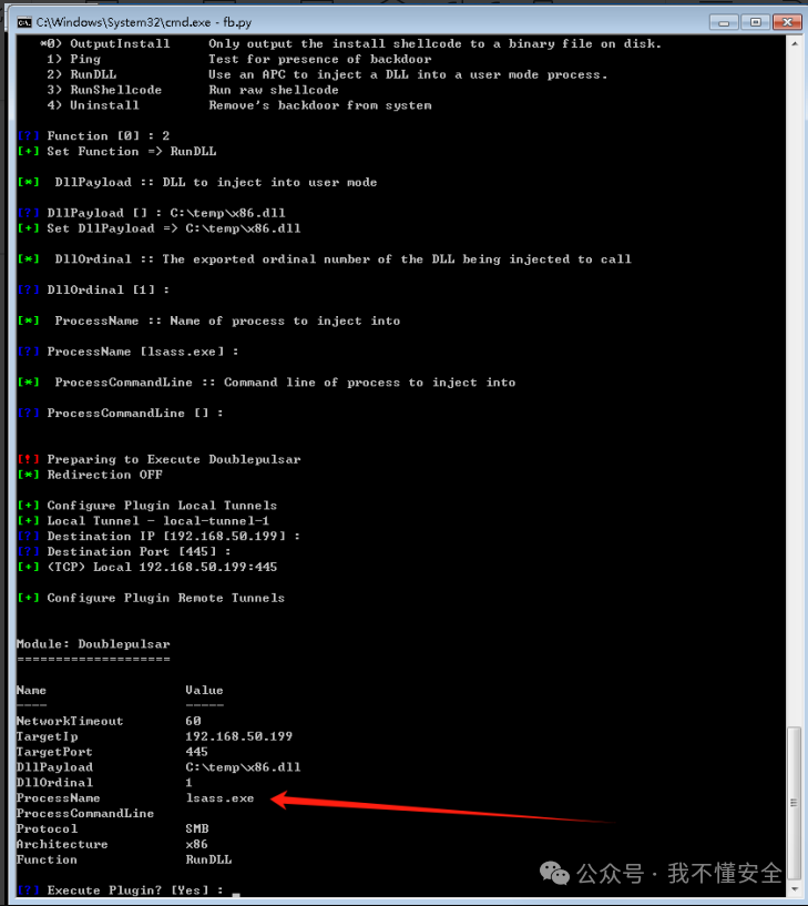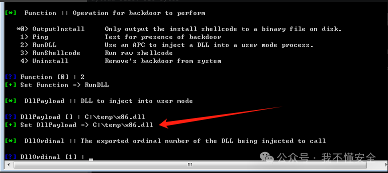 前面都是默认,需要注意的是,在Function这里的时候,需要选择RunDLL选项,Eternalblue漏洞模块不需要下shellcode.bin后门
