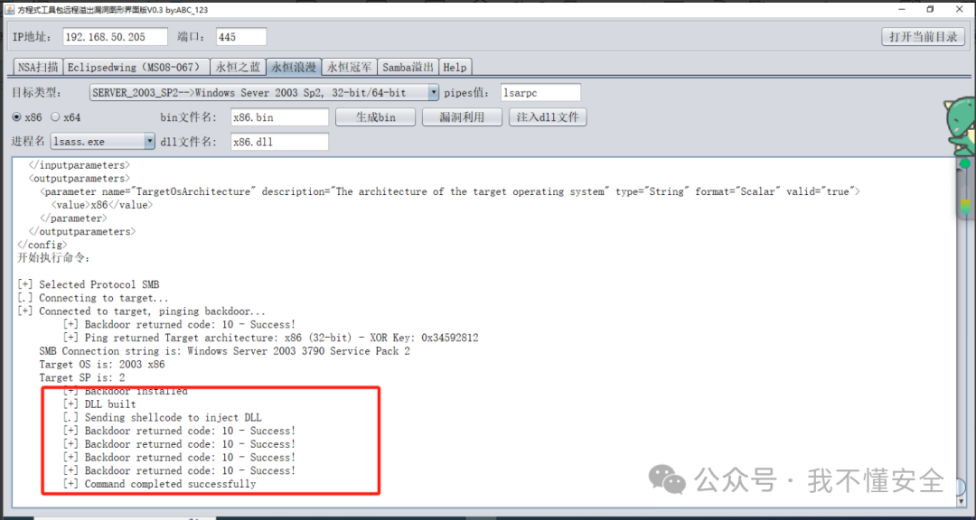 最后针对windows server 2003 sp2 x86的实验目标,演示一下abc123表哥的神器,解放双手