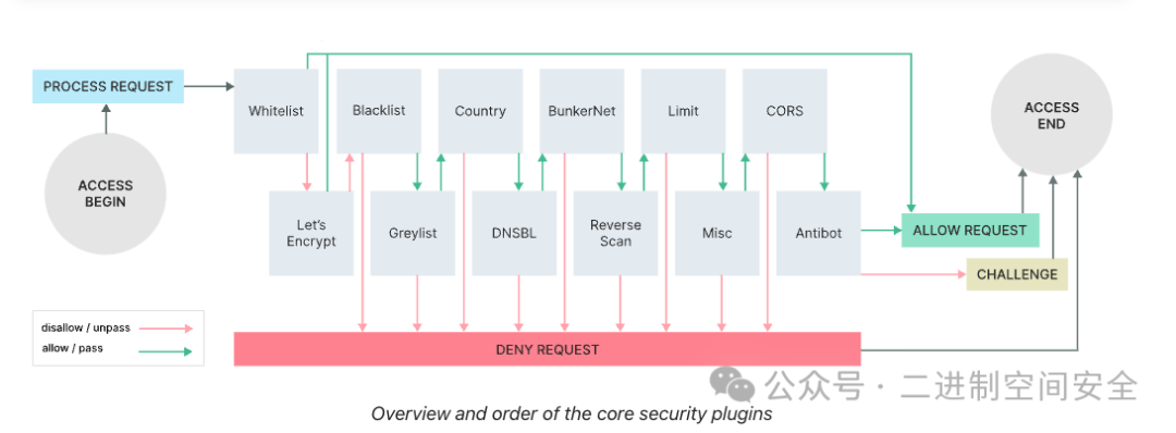 BunkerWeb自带一套强大的插件系统,可以轻松添加新功能, 官方默认自带以下安全插件: