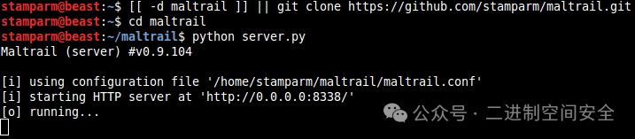 命令可以看到Maltrail系统已经启动成功,如图:
