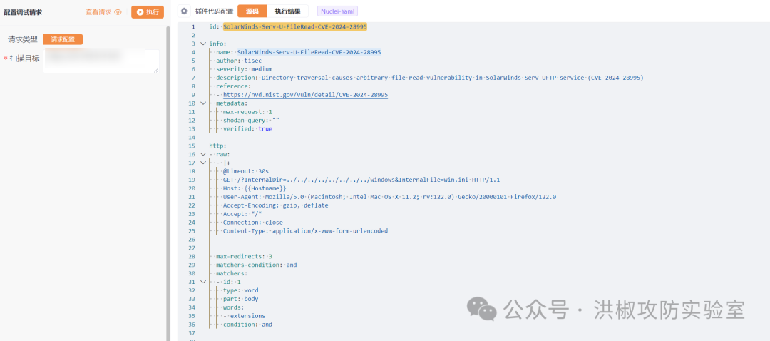 文件夹中,放入刚刚写好的SolarWinds-Serv-U-FileRead-CVE-2024-28995.yaml