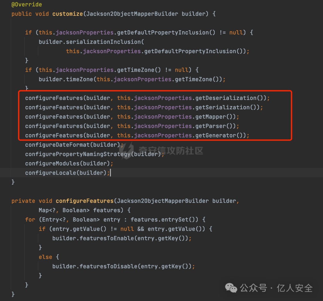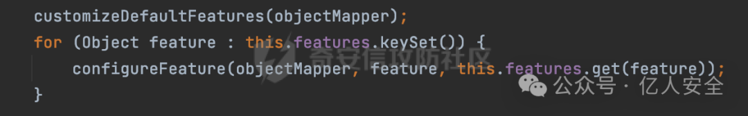 在configure方法里进行了相关的配置,这里通过调用customizeDefaultFeatures()配置了一些feature: