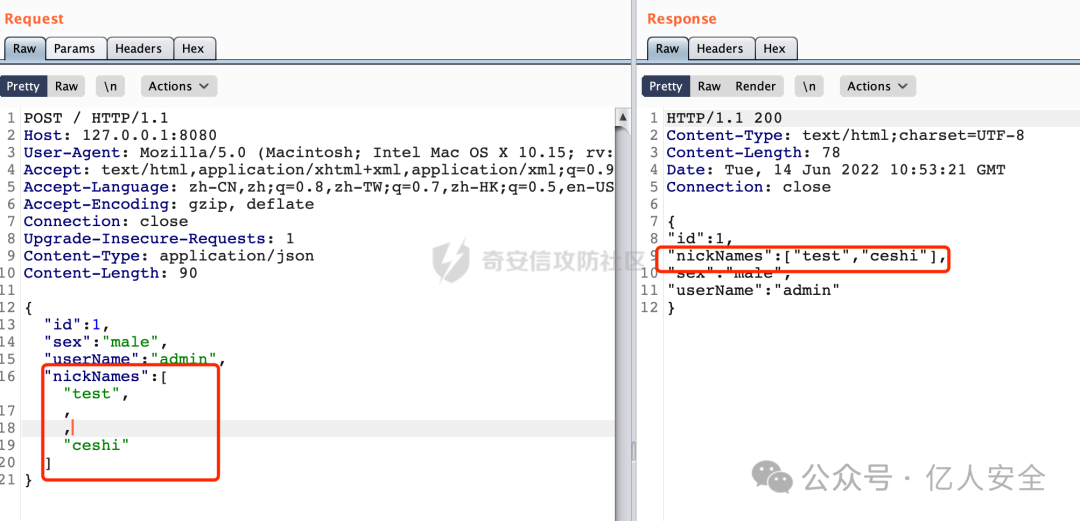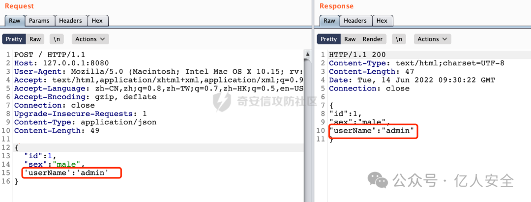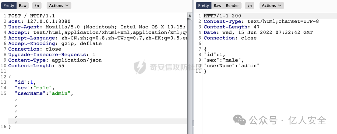 除此以外,虽然说大多数都是使用的Jackson/Fastjson,但是不排除还有使用gson等其他解析库的。一些Feature同样的会有影响,例如标准JSON里面是不能包含换行符的(必须以\n表示),但是Fastjson和gson都是支持的,这里也会引入一些干扰项。总的来说,通过上述的一些技巧在一定程度上还是能进行区分的。