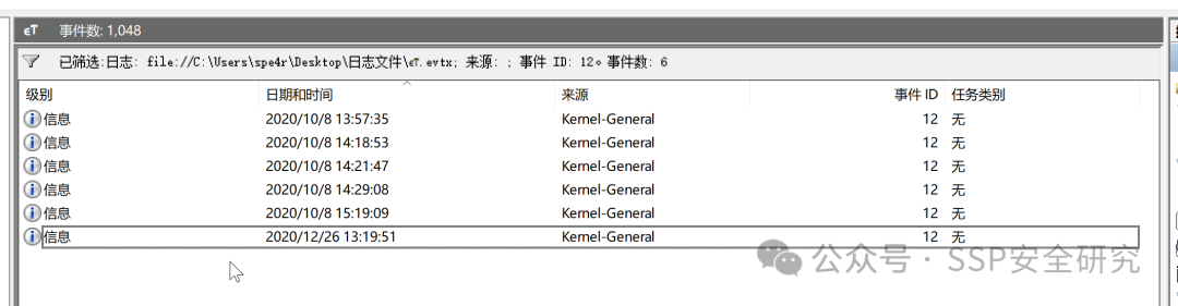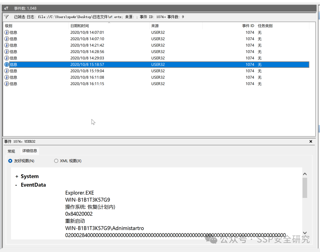 过滤出事件ID为1074的事件ID 发现重启过两次
