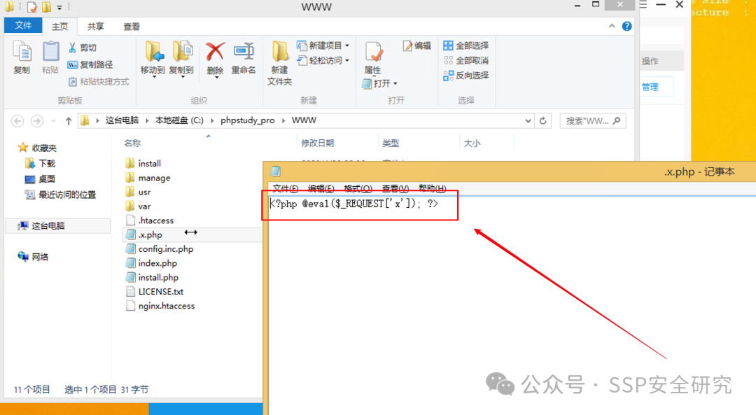 在网站根目录发现一个隐藏文件.x.php 打开后查看发现是一个一句话木马。