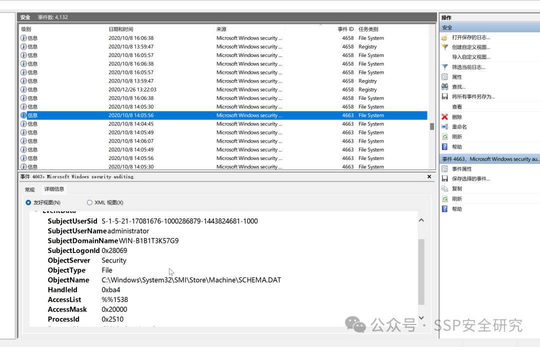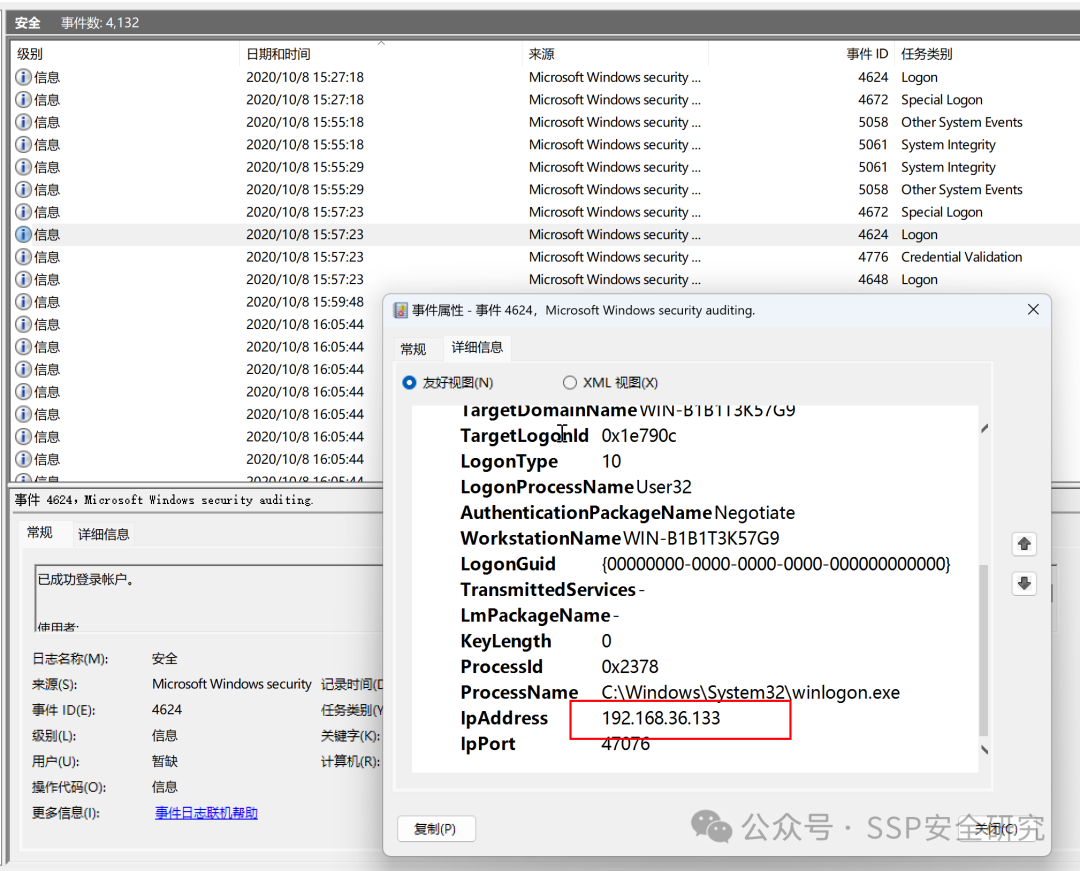 分析日志文件安全事件 根据时间排序,查看事件ID为 4624的事件